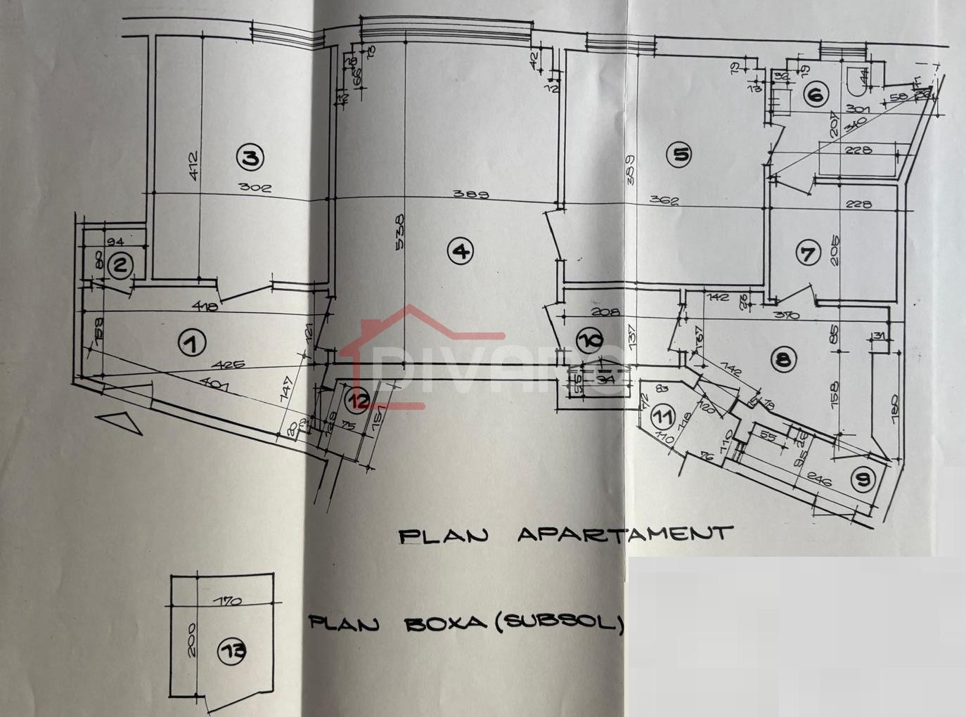 Proprietatea este formata din doua apartamente a cate 2, respectiv 3 camere. In total sunt 5 camere luminoase, cu un aer boem. In suprafata totala de 127mp, proprietatea se compune dintr-un living de 21mp, inca o incapere cu biblioteca, trei dormitoare, bucatarie, chicineta, camera de serviciu, oficiu, 3 bai, debara si o camara. Bucataria are iesire pe unul dintre cele doua balcoane inchise, iar una dintre bai are dublu acces. De asemenea, in subsol, exista acces la doua boxe ideale pentru depozitare.
