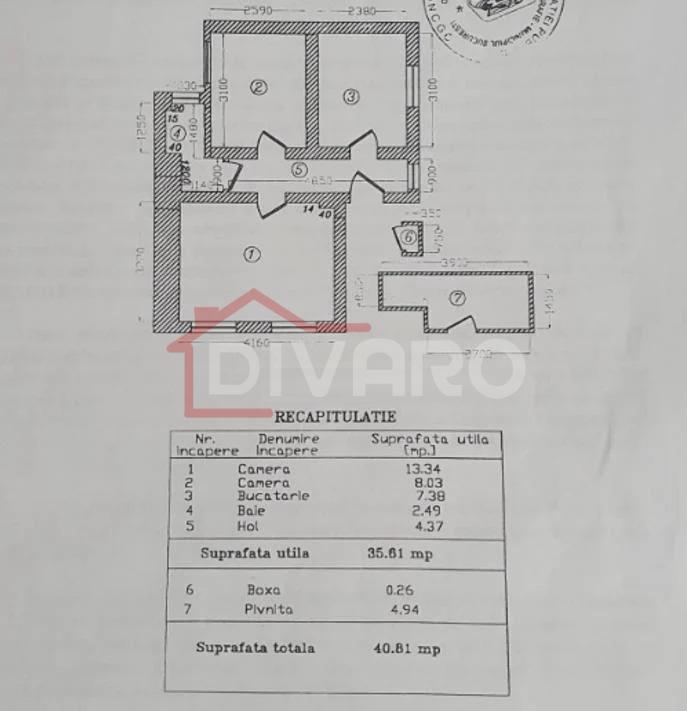 Apartamentul are o suprafata totala de 42mp si se compune dintr-o camera de 14mp, ce poate servi drept living, dormitor, bucatarie mobilata si utilata si baie. De asemenea, la demisolul imobilului dispune de o boxa ideala pentru depozitare si o pivnita uscata. Locuinta a fost renovata integral de curand, alaturi de arhitectii CasoTeca, pastrandu-se stilul vintage al acesteia. Instalatia sanitara, centrala termica si tamplaria au fost inlocuite, iar finisajele sunt de o buna calitate. Se preda nemobilata, cu exceptia bucatariei, care a fost amenajata cu obiecte de mobilier noi si electrocasnice precum frigiderul, plita electrica, hota si cuptorul.